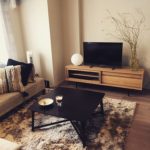 [実例写真の主要インテリア:センターテーブル・ラグマット・テレビボード・ソファで計算。]